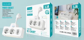 KOUVOLSEN KOS-27017 Presa Multiporta Standard UE 2 Prese AC,2 Porte USB, 2Porta Type-C,
